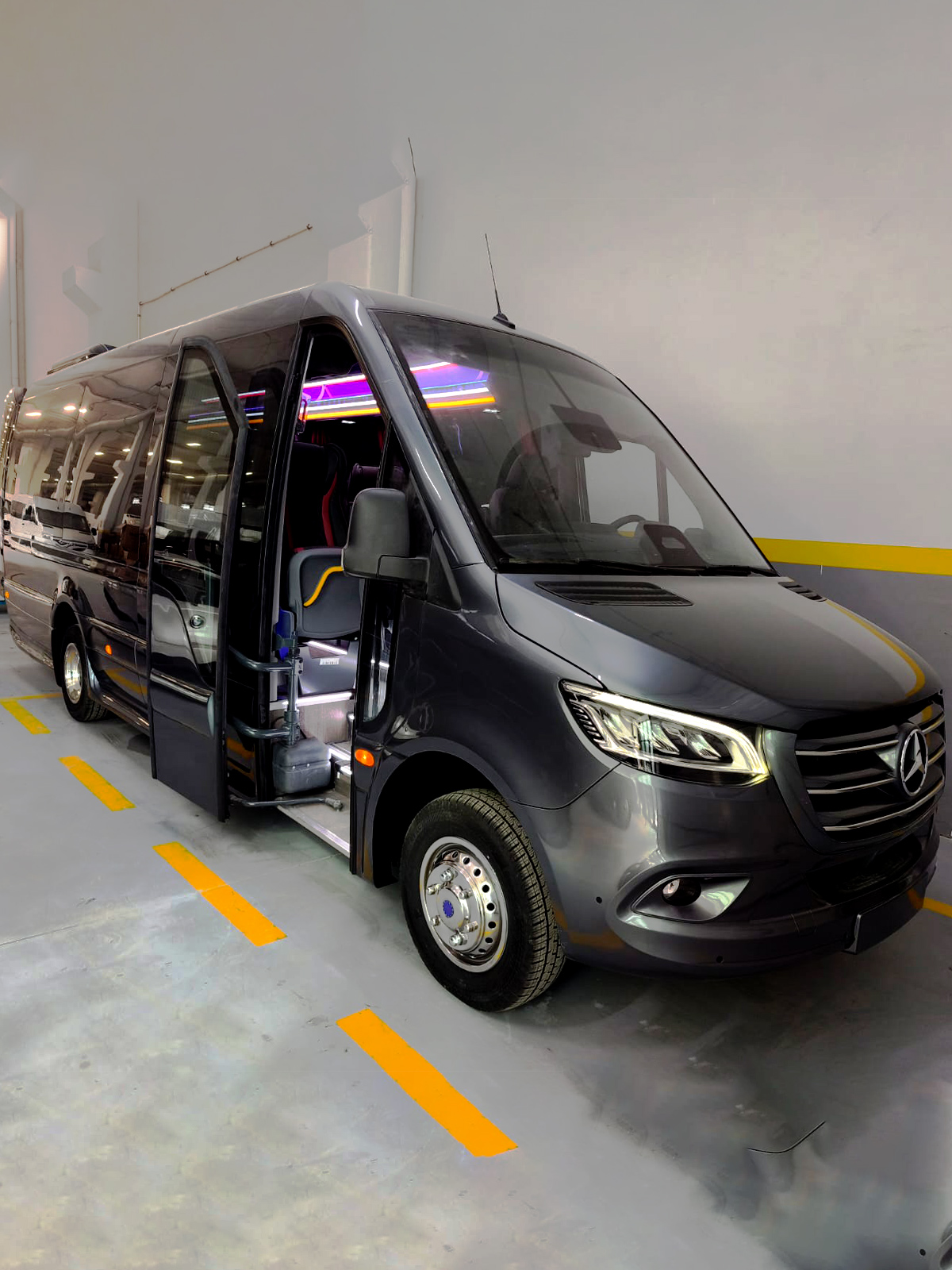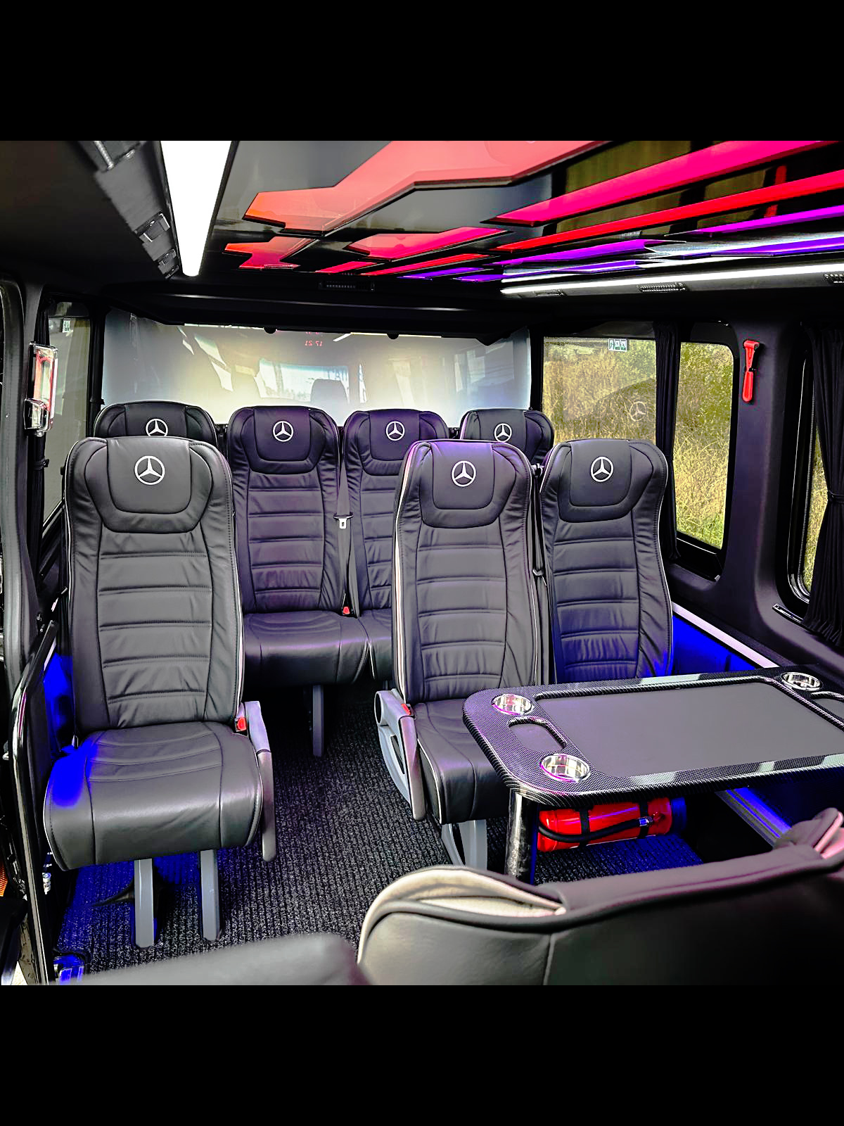 Our Mercedes-Benz minibuses have been designed to the highest standards of VIP comfort, merging elegance and functionality in every journey. Every detail has been carefully selected to offer an unparalleled travel experience.